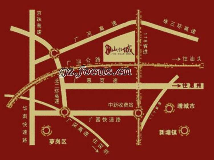 周边是广汕公路,118省道,广河高速,北三环;镇内有公共汽车站,可以非常方便去往广州、增城、新塘等周边城镇;地铁21号线