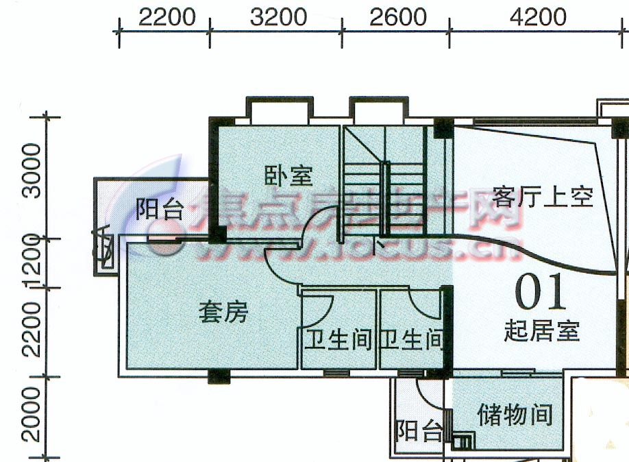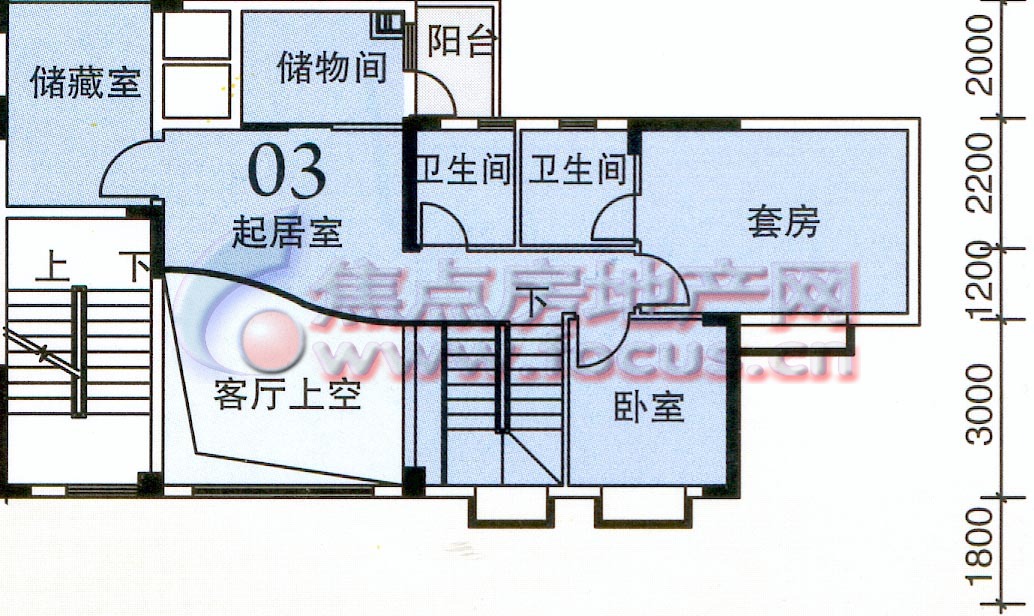 2室2厅2卫-瀚御居二梯十一层复式二层03单元153.45㎡两房两厅