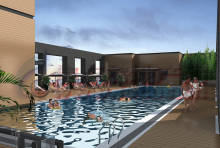 21层楼顶的天面泳池,背对天空,面向自己,漫游天际,全城少有的天面泳池,,浮出城市之上的繁华私城,健康美态随心释放。你可以白天在泳池边去欣赏蓝天和云朵,也可以晚上去俯视一座城的繁华。