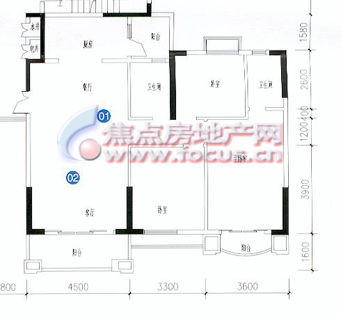 3室2厅2卫-锦绣银苑3座标准层平面(参考)图01、02单位