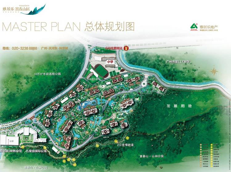 雅居乐富春山居总占地面积约306812㎡,总建筑面积约为744681㎡,位于科学城西区,广汕路与大观北路交汇处,地铁6号线黄陂站地铁旁。项目打造涵盖住宅、商务会馆、公寓、公立小学等为一体的,纯粹大宅CEO国际生态住区,全新演绎“世界回到自然时”的山居传奇。