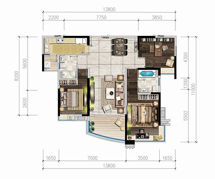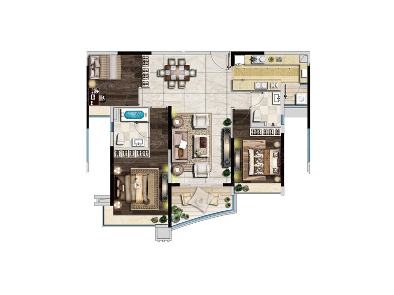 2室1厅1卫-熹玥国际公寓 CEO别馆户型