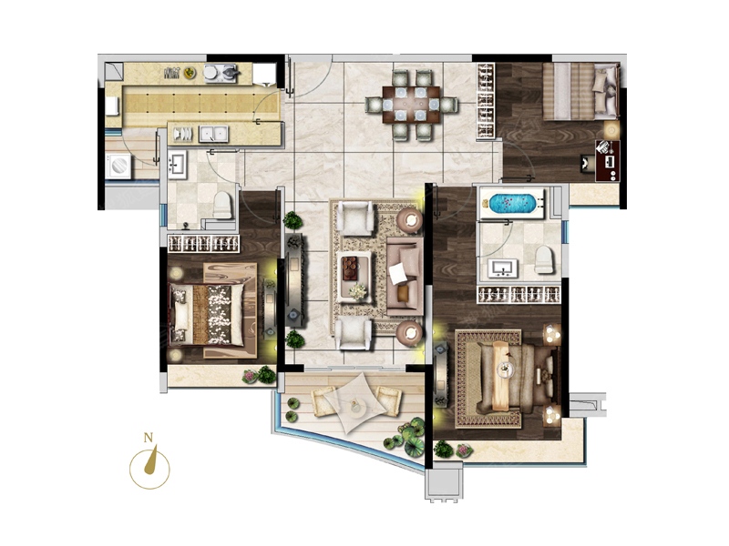 3室2厅3卫-[蓝山]178㎡舒适三代居双套间