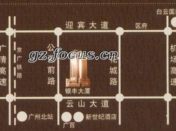 银丰国际公寓位于云山大道与公园前路交汇处,花都CBD核心地段,市政配套完善,交通便利,瞬间畅达珠三角各地。项目共27层,其中地下两层,地上共25层,其中一层至四层为面积超过2万平米的大型购物中心,五层为会所、商务中心、康体中心,五A层为停车场,六层以上为20-88平米服务公寓。