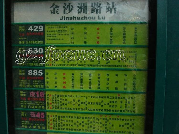 55路,42路,276路,283路,290路,424路,高峰快线9路,高峰快线25路(金沙洲路站下车,由广州方向前往下车后前行至十字路口左转。)