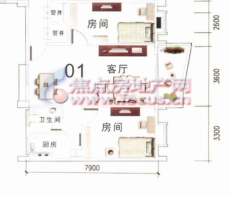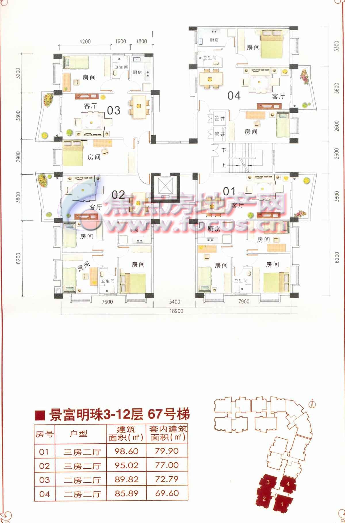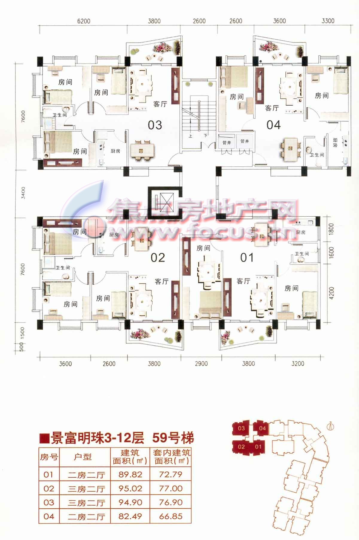 2室2厅1卫-景富明珠阁3-12层65号梯01单位
