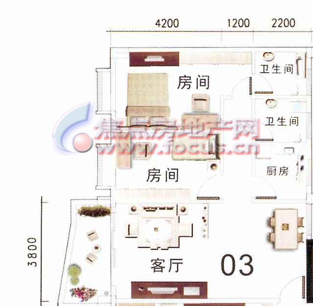 2室2厅1卫-景富明珠阁3-12层67号梯03单位