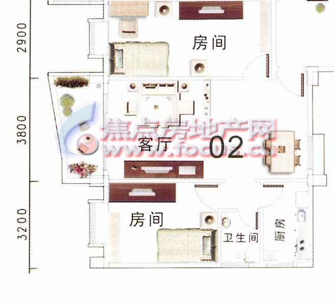 2室2厅1卫-景富明珠阁3-12层65号梯02单位