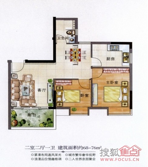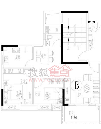2室2厅1卫-J栋15-22层B栋B户型