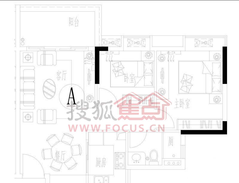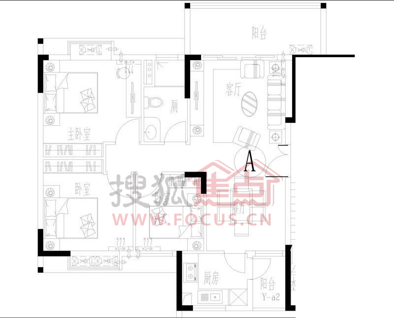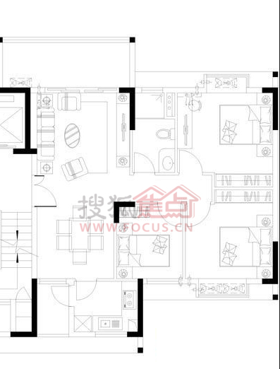 3室2厅1卫-J栋-06-14层A1栋A户户型