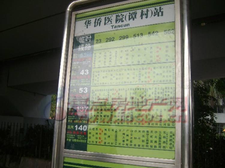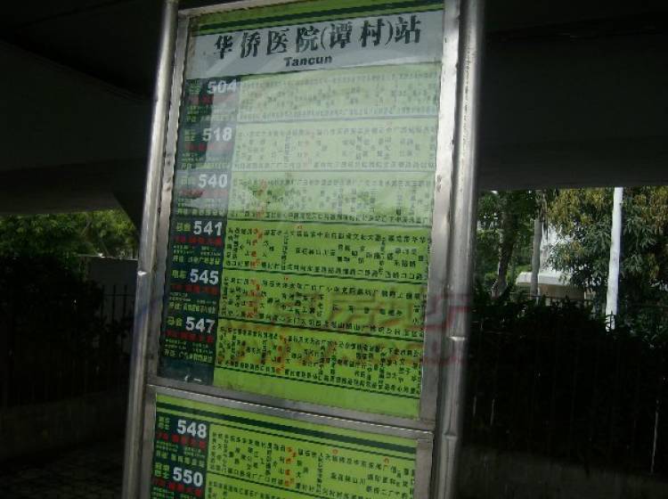 公交车:华侨医院(谭村)站,途经线路包括245路、540路、504路、547路、43路、137路、548路、284路、大学城4线、513路、545路、140路。