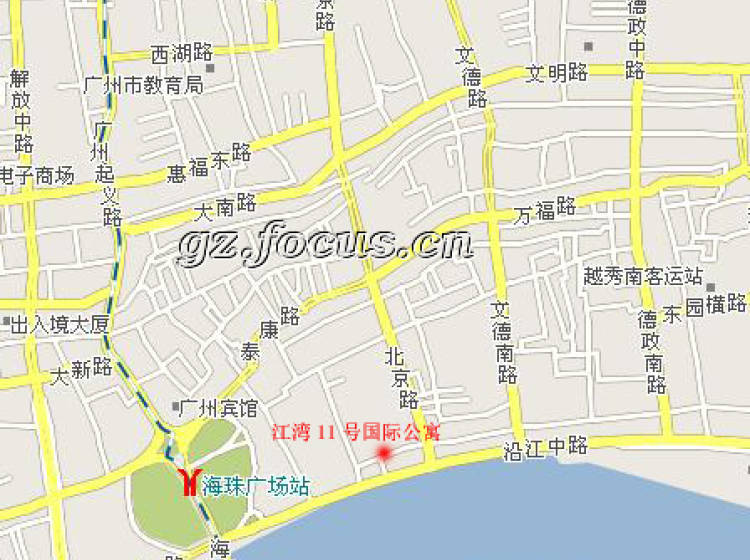 江湾11号国际公寓位于越秀区八旗二马路11号,属于北京路国际旅游商贸区与广州CBD核心区的辐射范围内。比邻北京路、海珠广场、江湾大酒店,项目西侧为德政南路,紧依北京路商圈及一德路商圈;南面为沿江中路,距离珠江约50米,拥有一线无敌水景;东面为江湾商业中心。距珠江滨水风情街约15分钟,地铁6号线越秀南站、越秀南客运站约10分钟路程,多条公交线路直接通往项目区域。东西有海珠桥和江湾大桥,有地铁及交通便利,地理位置十分优越。