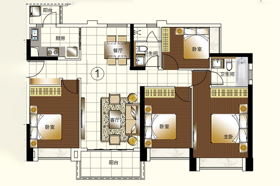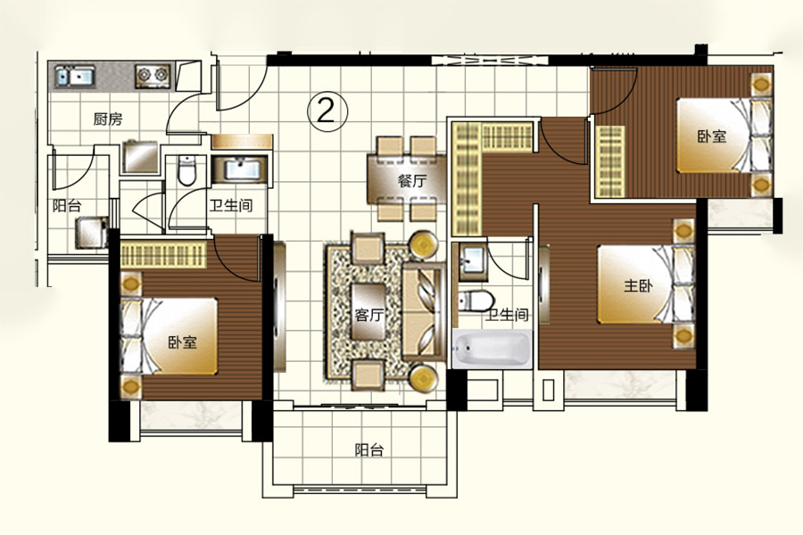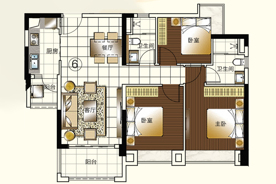 在售 户型方正 全明格局 主卧带卫 干湿分离 飘窗 观景飘窗 双阳台