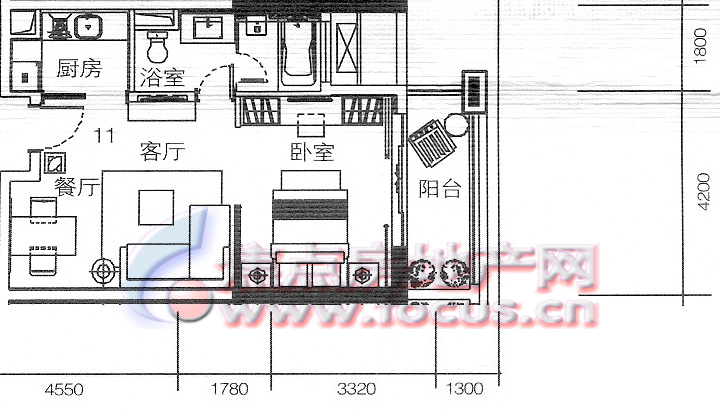 0室-天河高德置地广场朱美拉公寓C座01单位平层关系图