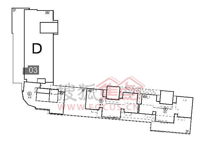 0室-朱美拉公寓D座03单位西向平层关系图03单位