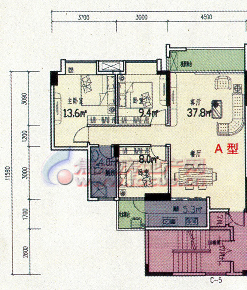 3室2厅1卫-A型106.74㎡三房二厅一卫