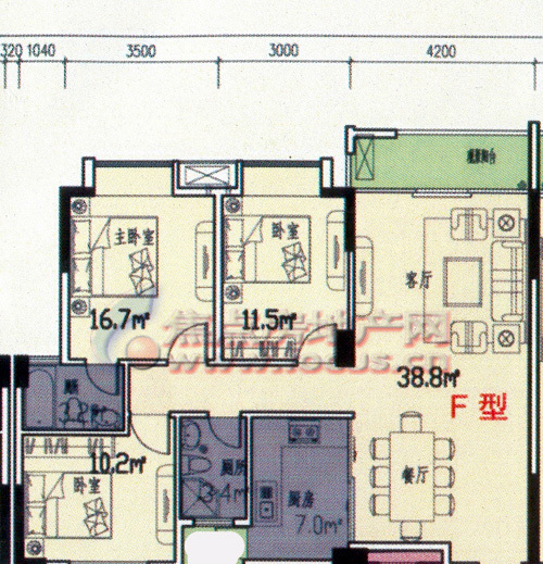 3室2厅2卫-F型121.36㎡三房二厅二卫