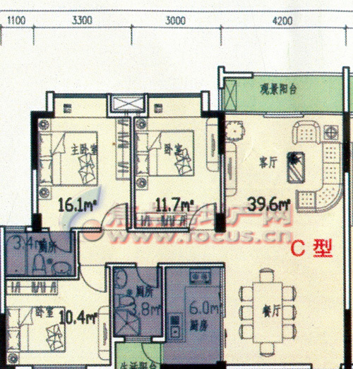 3室2厅2卫-C型117.16㎡三房二厅二卫