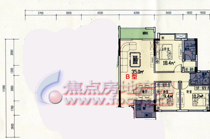 3室2厅2卫-B型109.55㎡三房二厅二卫