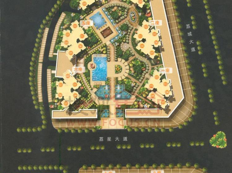 项目占地约5万多平方米,容积率为2.13,绿化率为31.4%。由8栋楼宇组成,户型涵盖74-143平方米两房子至四房,主力户型为99-120平方米的三房。小区被荔星大道划分东西两区,东区1-6栋建筑。西区7、8栋建筑,多为南北朝向。分为11层、16层、32层三种楼栋,楼间距最宽处近100米。户户带超大景观阳台、全落地窗、U型厨房、双阳台。