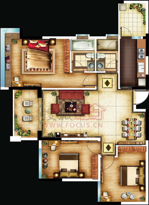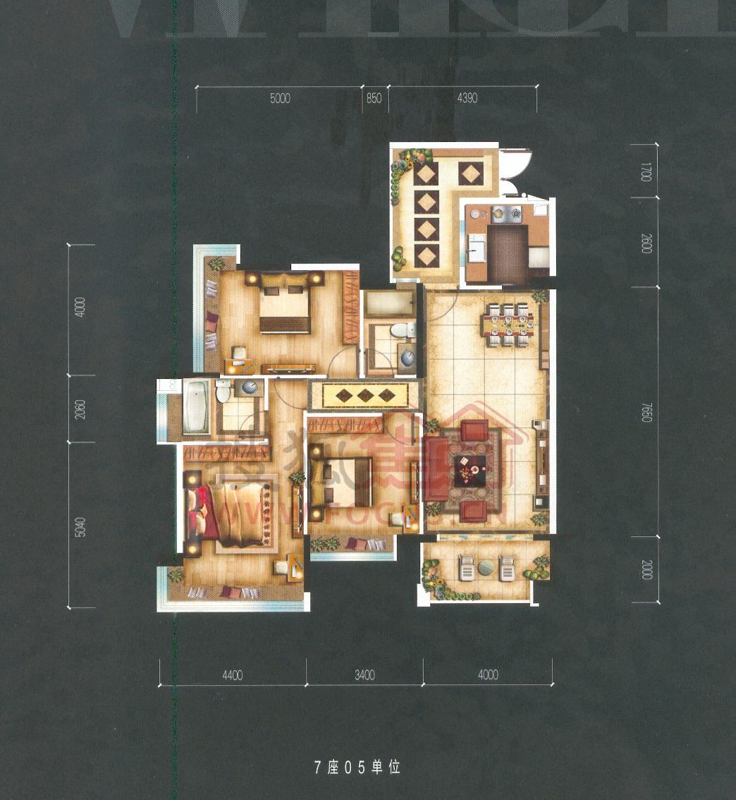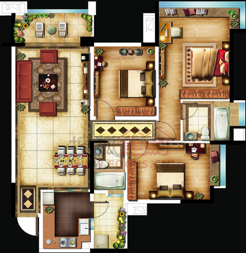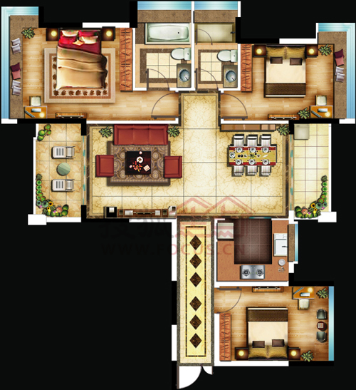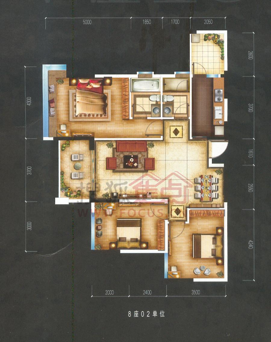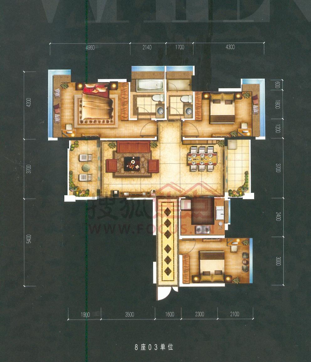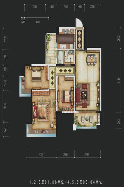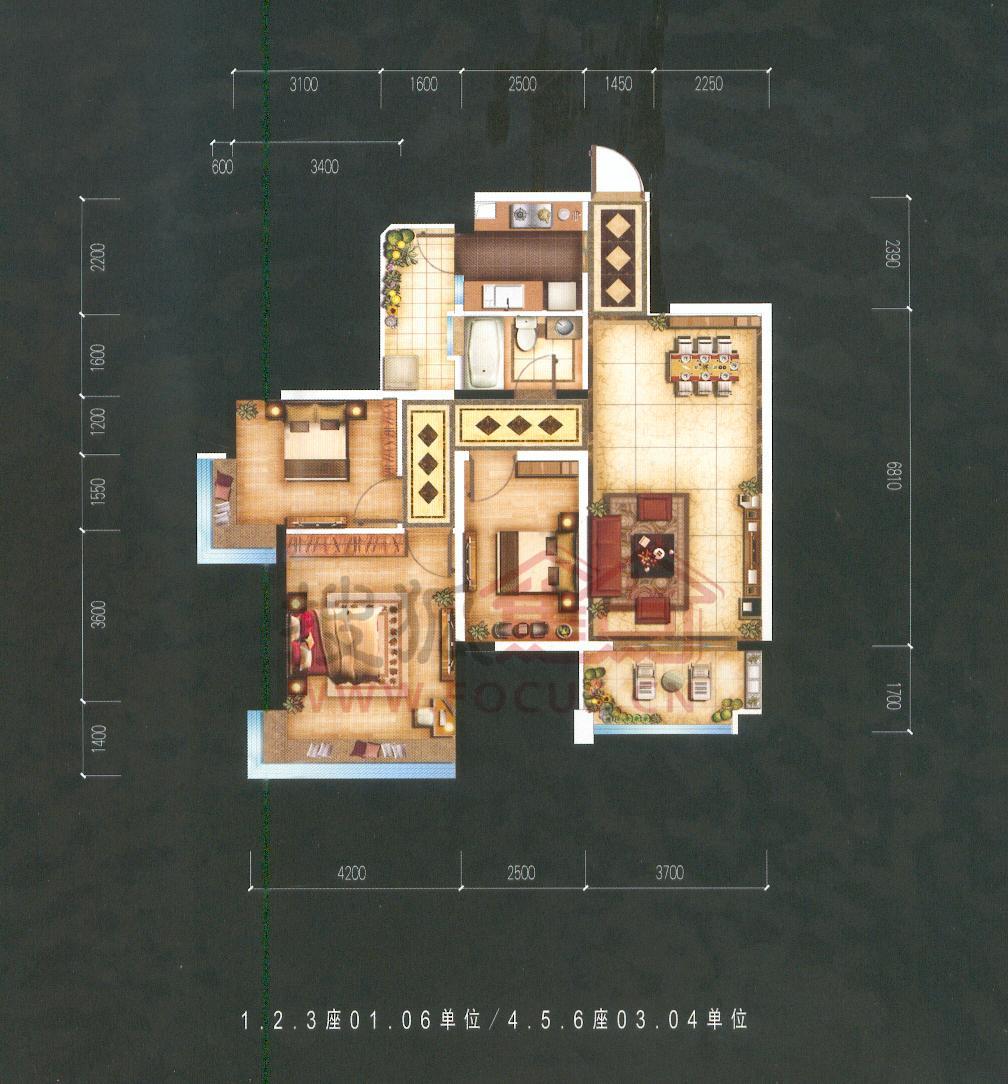 3室2厅2卫-123座03、04及456座01、06单位户型图