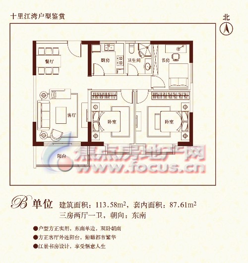 4)户型以80-166㎡的二房和三房为主,两梯四户,户户单边,户户望江,是城中难求的宜居户型,在以大面积豪宅为主的滨江东尤为显得珍稀。