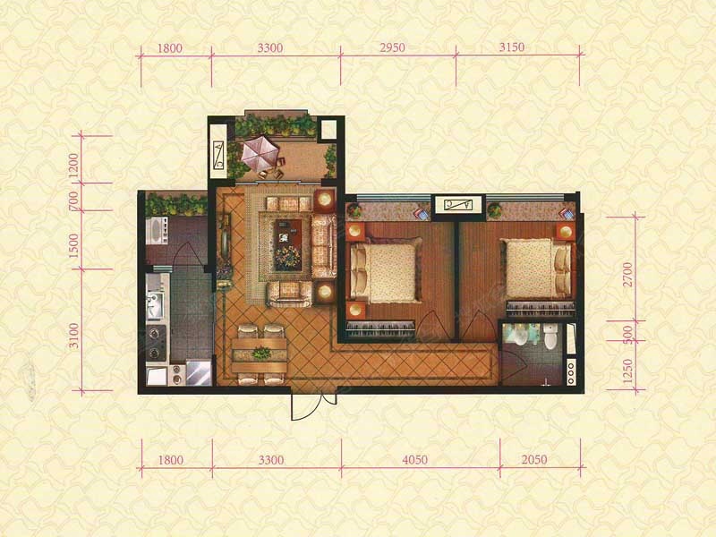 2室2厅1卫-F6/F7/F8/F9栋B1户型