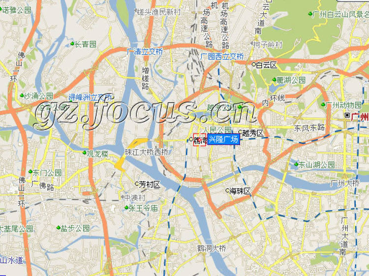 兴隆广场位于中山七与康王北的交汇处,陈家祠广场对面。公交陈家祠站;地铁陈家祠站。