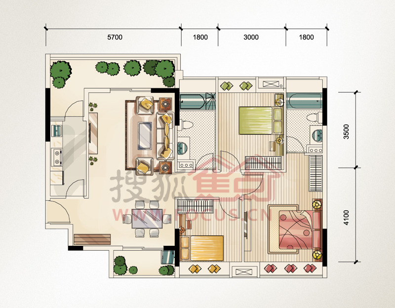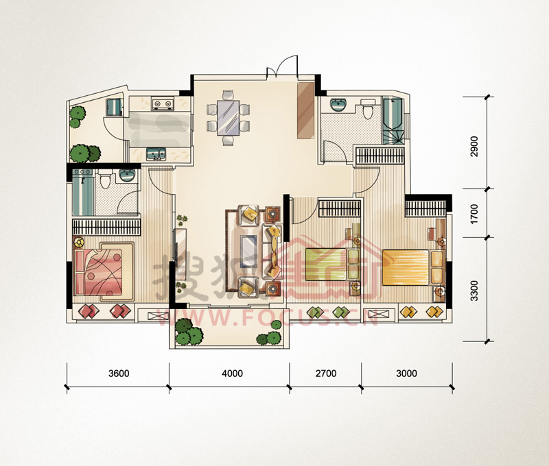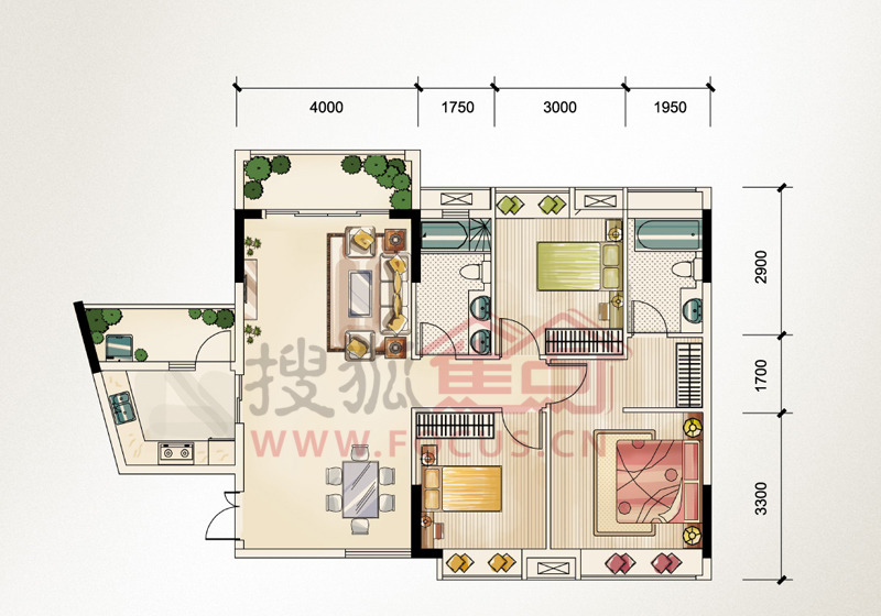 3室2厅2卫-保利壹号公馆T40205户型