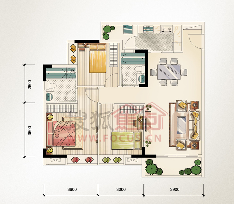 3室2厅1卫-保利壹号公馆T6T7栋020306户型