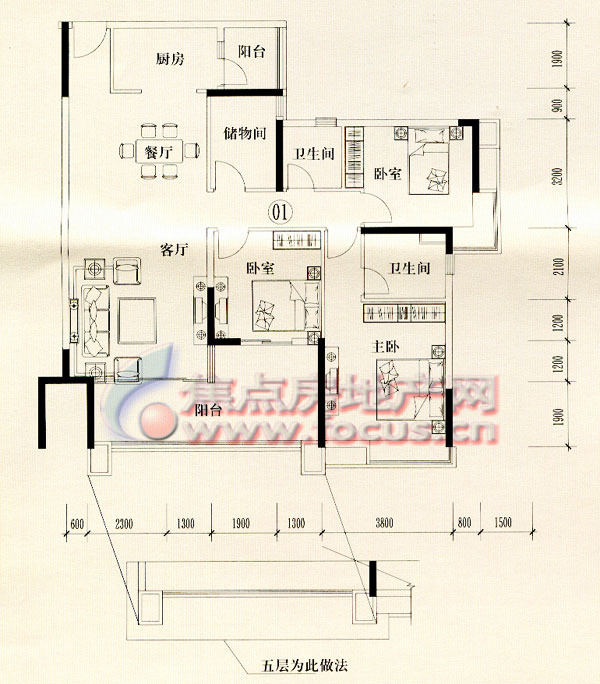 3室2厅2卫-中海金沙苑9栋01单位(5-16层)