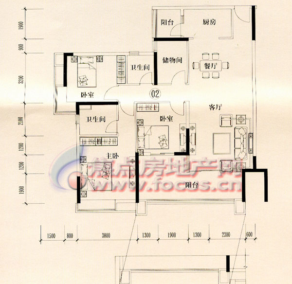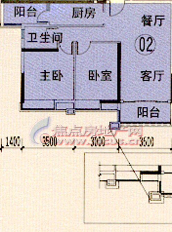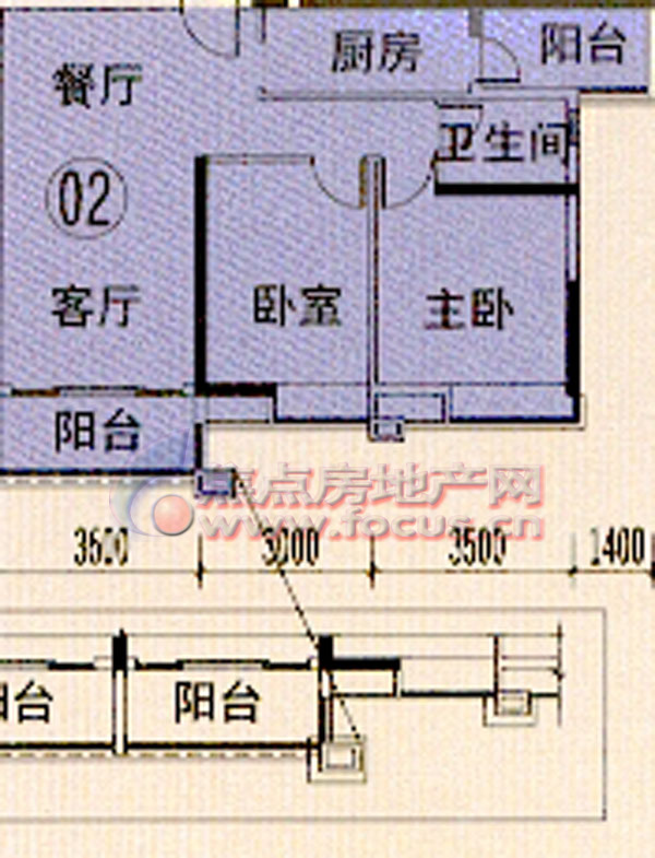 2室2厅1卫-中海金沙苑A7栋(5-16层)02单位