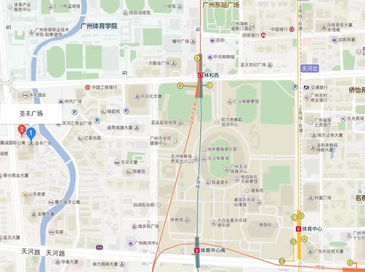 APM线林和西站;1号线体育西路站;3号线体育西路站;3号线北延段林和西站,体育西路站;5号线动物园站