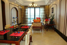 俊怡御景花园位于花都区建设北路的西侧,合兴大酒店旁。规划总用地面积48240㎡。整个规划用地呈不规则曲尺形,规划住宅建筑东西向条状展开规划布置,建筑高度从西至东中间略高,左右渐降低,分别为16、18层。规划布置共享的中心共绿地。项目充分利用地形、地貌、以及周边原有生态环境塑造城市街景,结合高差布置组团绿地。整体采用工字型建筑格局,两梯四户,较大限度地进行采光通风,避免户与户之间的遮挡。本项目为纯东南亚园林风格,一期景观面积达2万4千多平方米,园林景观引入东南亚园林。小区设有700多平方米的大型景观游泳池、泰式风情的观景亭、舒适的阳光草坪、闻香廊、拾花湖、丝路花语,为业主提供休闲场所。在设计时考虑主体建筑坐向、日照方向、光影等因素,将景观与建筑融为一体。项目在塑造东南亚园林风情的同时,将更多的心力融入了细节设计上,喷泉、水池、草坪、景墙等处所用的装饰小品也充满浓烈的泰式元素;在雕塑小品的选用上,将泰式喷水雕塑、泰式景观柱、泰式风情浮雕墙等特色造型置入景观之中。