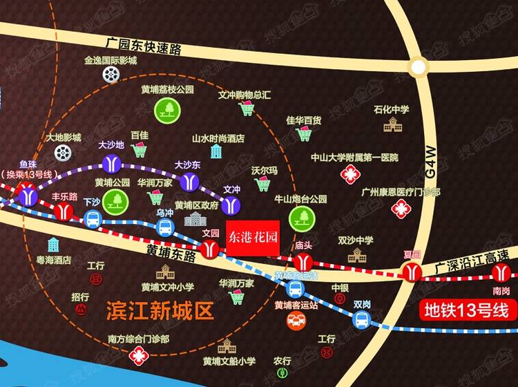 东港花园位于黄埔区文冲机械市场以东,四海酒家以西。项目分A、B两区开放,首推A区217套单位,主推80—90㎡的单位,同时还有40、60、110㎡单位。