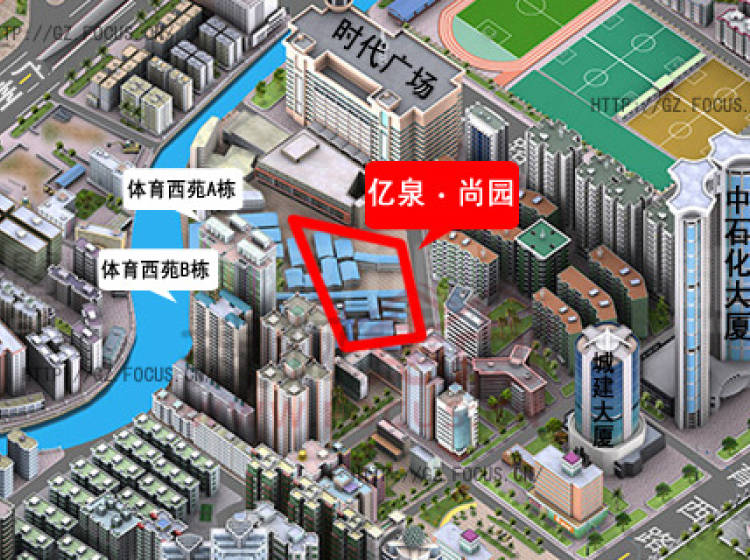 亿泉尚园位于天河北时代广场 南侧,东眺体育中心,西望广州大道,北邻时代广场,南通天河路,整体环境闹中取静。项目开发商亿泉投资置业于地块邻近位置已开发住宅项目体育西苑及大型综合商业旗舰天河汇,整个生活圈规模逾20万平方米。