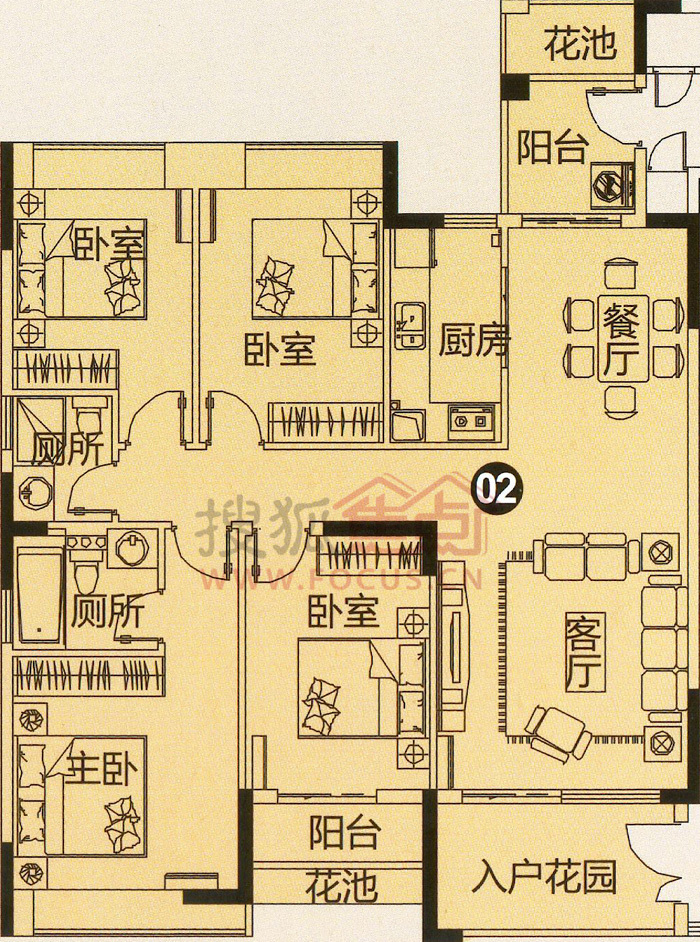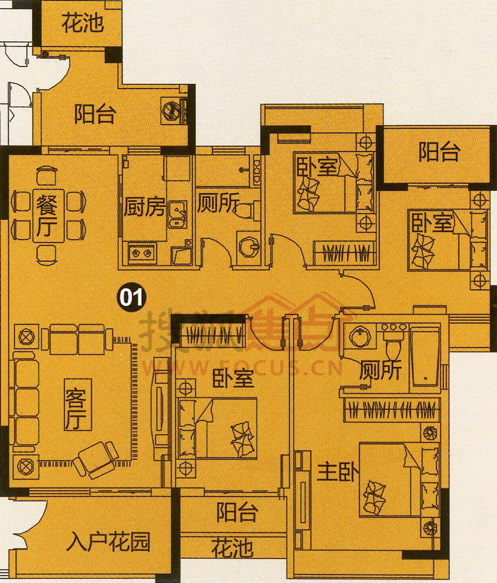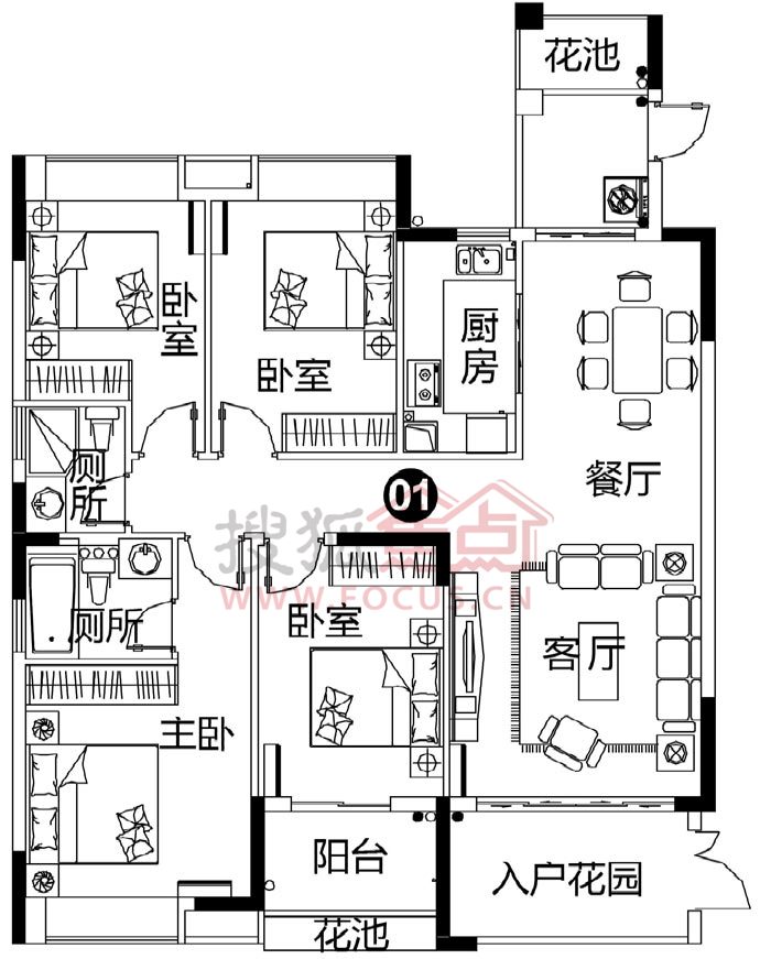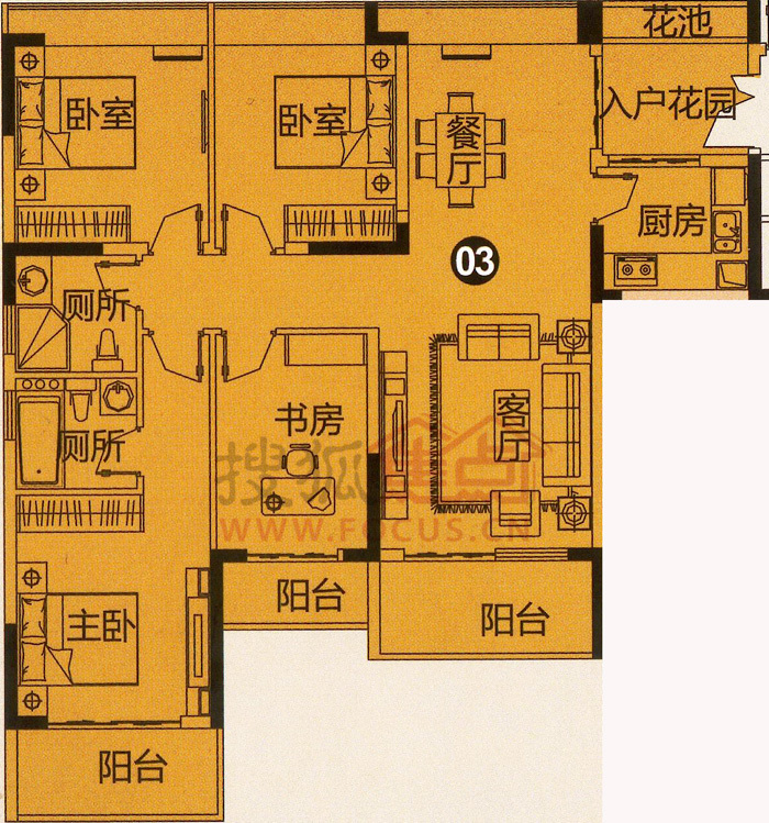 4室2厅2卫-C栋03单元半山美宅四房两厅