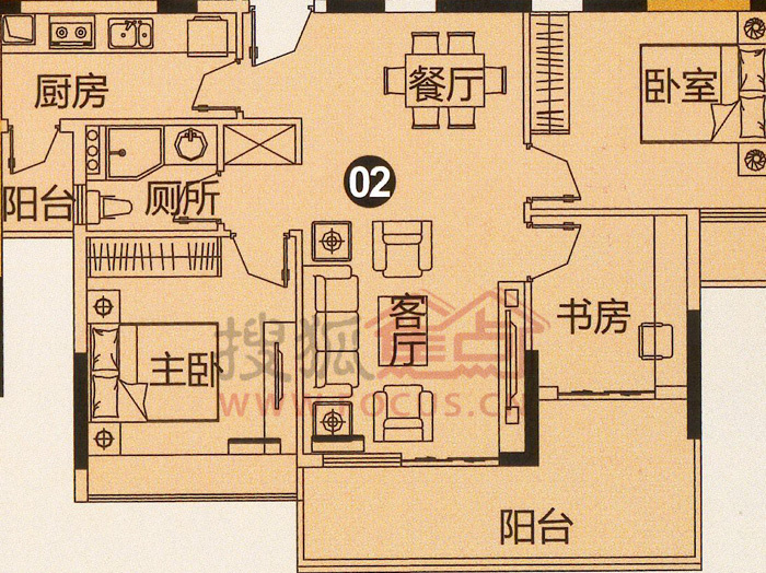 3室2厅1卫-D栋02单元半山铭郡三房两厅