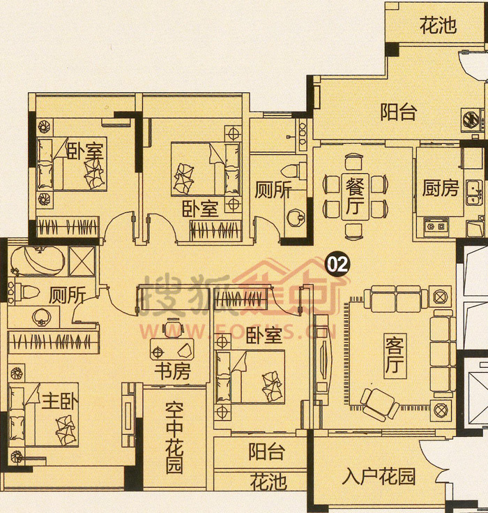 4室2厅2卫-B栋02单元半山秀园四房两厅