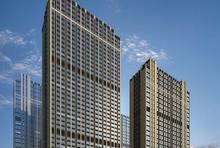 本项目的居住建筑布局主要采用行列式,保证每一户都南北朝向和有良好的通风采光,也有利于充分利用土地资源。住宅采用首层架空的形式,使景观视线更为通透,使得各个庭院景观互相渗透融为一体。住宅的高度由南向北逐渐递增,较大程度的引入滨海景观。办公建筑沿40米科海路为东西向板式布局,东侧沿60米路为点式布局,与裙楼商业结合,并考虑与现状建筑的融合,形成南北通透的视廊,这样就能够更好地划分各个区域的景观,且同时又能够互相渗透。