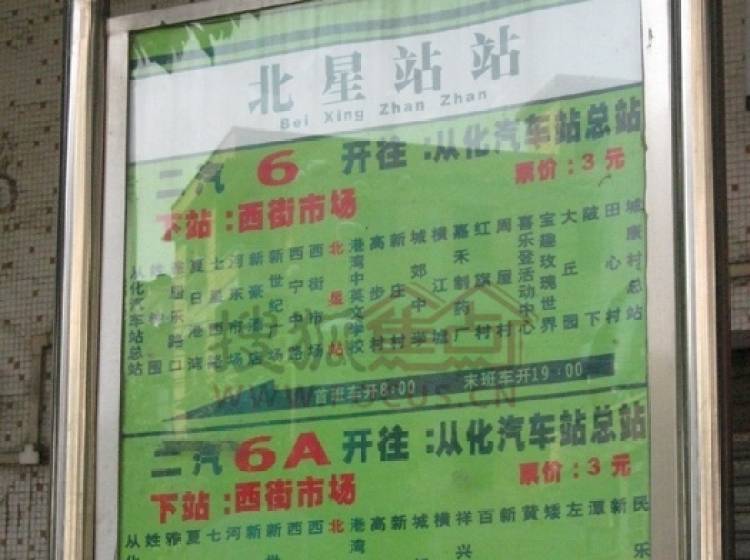 从化6路:蓝田东路站,西宁中路站,北星站,港湾中英文学校站