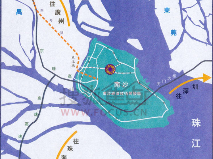 扼守南沙中轴主干道进港大道、接驳虎门高速公路、南部快速干线、东部快速干线;距地铁四号线金洲站和蕉门站步行约二十五分钟;公交线路方便,有多条线路途径此站并接驳到市桥、洛溪、广州流花车站等地