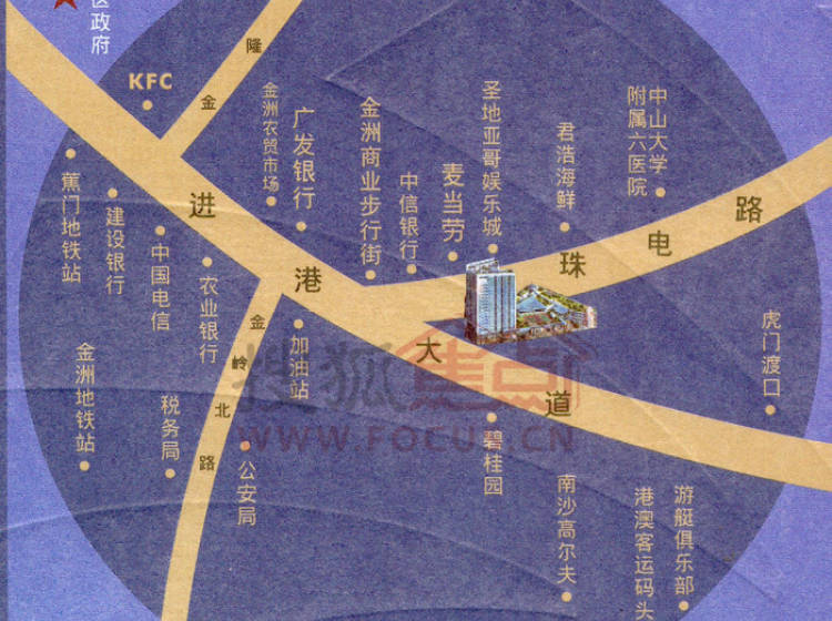 南沙第二中学,南沙中心医院,今洲地铁站,今洲市场,今洲邮局,中国银行,中国工商银行,中国建设银行,广州农村商业银行等等