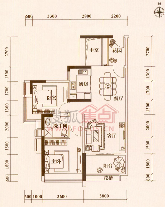 2室2厅1卫-1栋02单元86㎡两房两厅