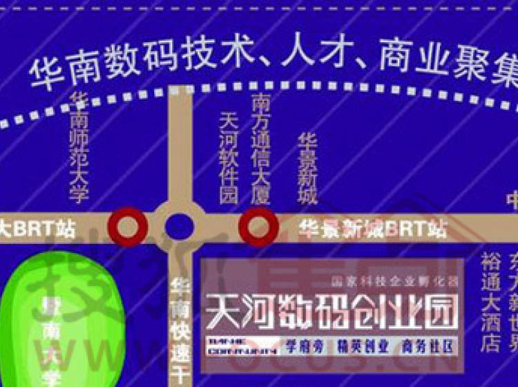 天河数码创业园,位于广州市中山大道西112号、114号。BRT华景新城站直达门口,交通便利。现正小户型公寓!面积由45-110㎡,可住可办公,多用途办公公寓,可注册!我们的园区,一共有三座主推产品,一、二号楼新推公寓。另外,还有一座文雅阁,11层,作为出租,租60元/平*月起。也是可住可办公的公寓。