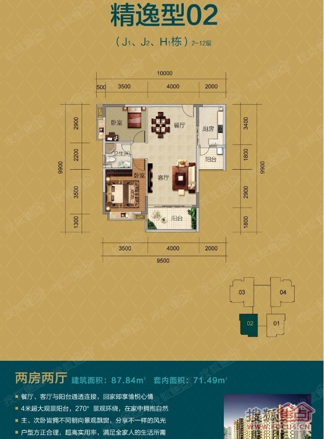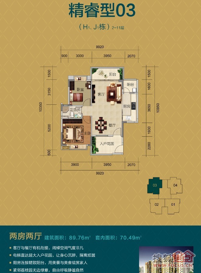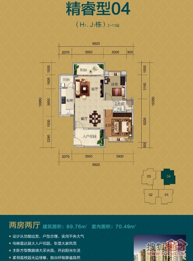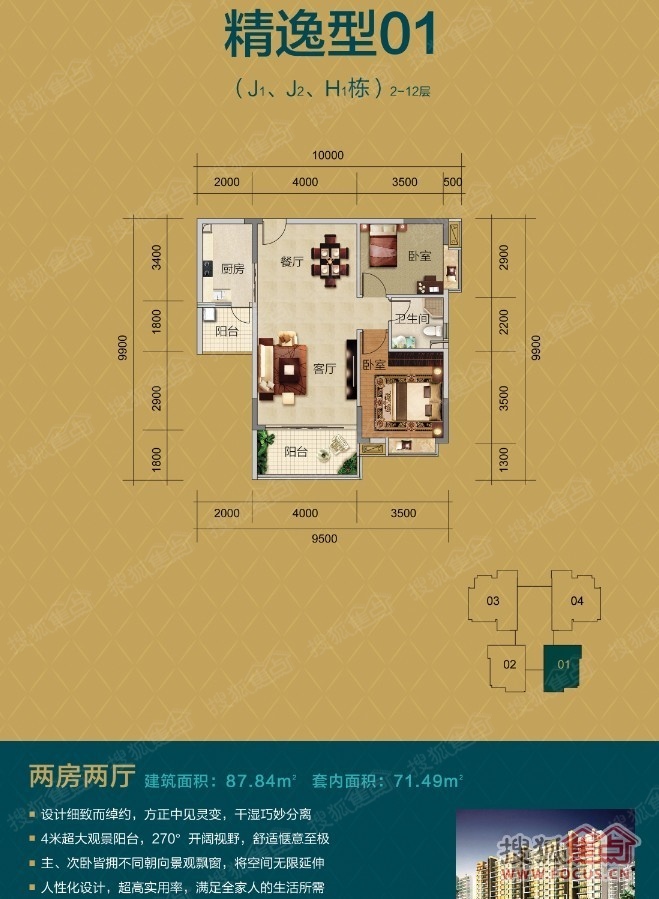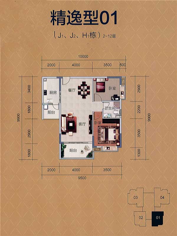 2室2厅1卫-J1栋,J2栋,H1栋精逸型01两居