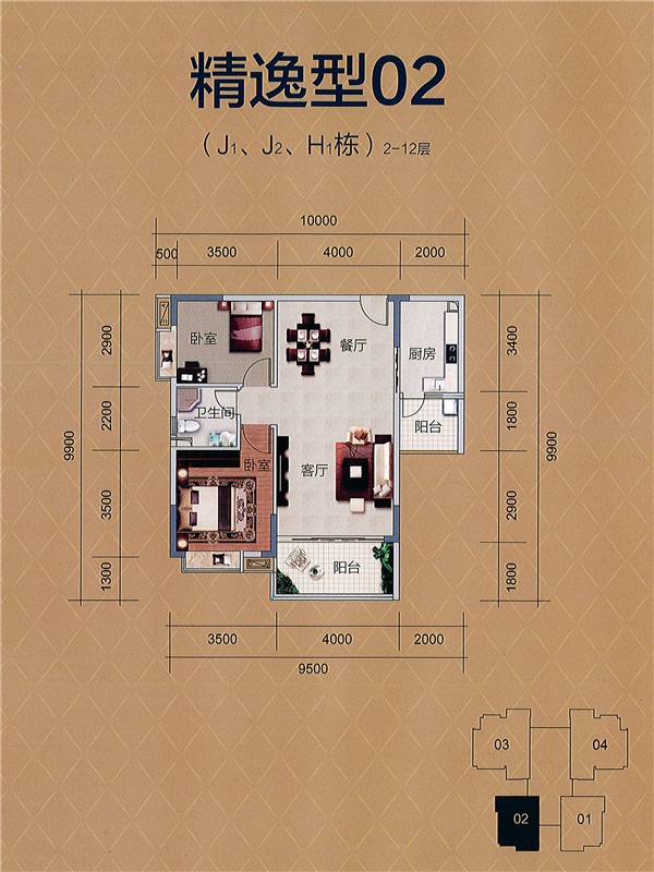 2室2厅1卫-J1栋,J2栋,H1栋精逸型02两居