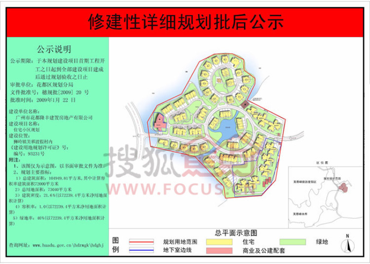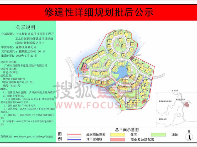 熙湖名庭位于花都区狮岭镇芙滨路以东、芙蓉龙怡苑以北,用地面积73030.78平方米、规划总建筑面积104646平方米。