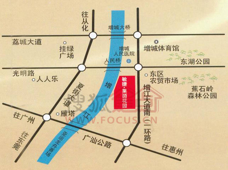 项目两边为沿江路、一环路,地处增江大道与光明东路交汇处
