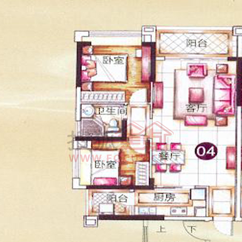 2室2厅1卫-莱茵花园7座02